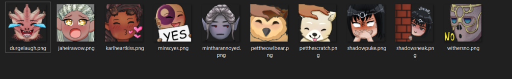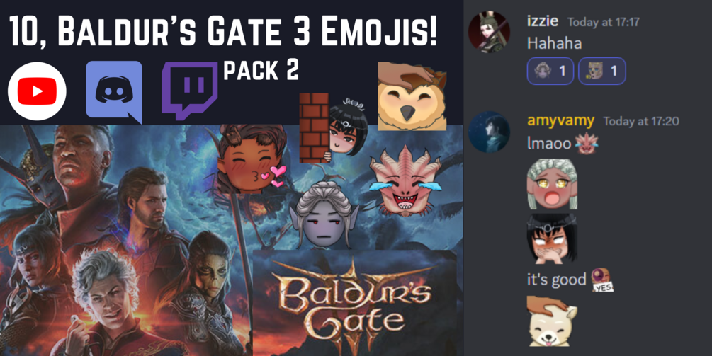 To celebrate the PS release of Baldur's Gate 3, as promised, 10 more emojis for you to use in your discord server and twitch or youtube chats (or anywhere else you want!).
